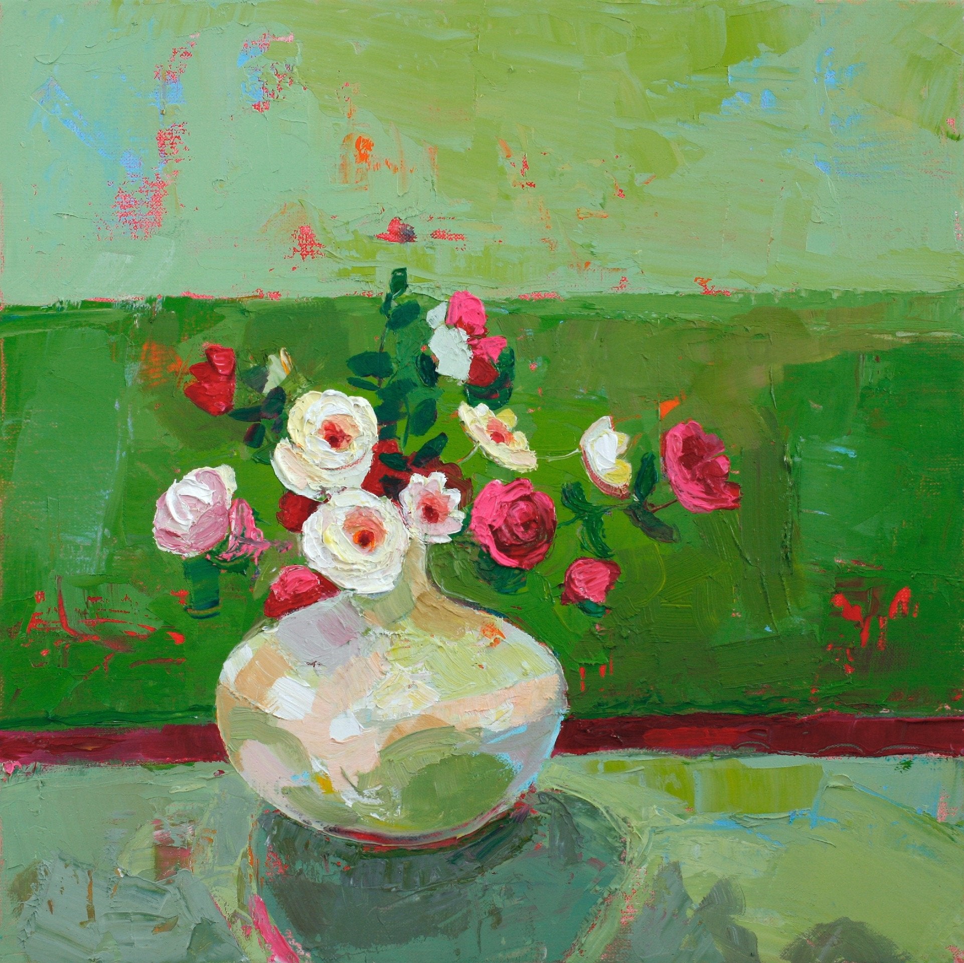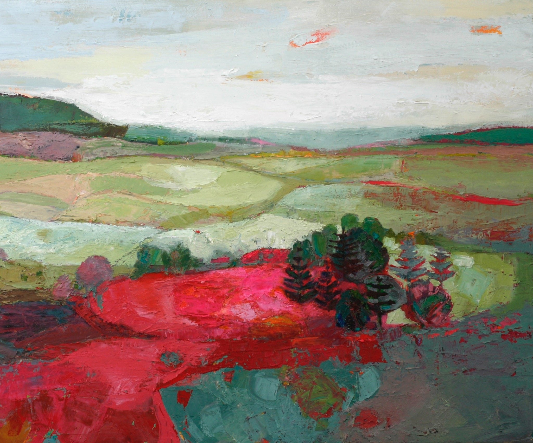 I think of a painting in terms of colour first, then texture, then the subject matter becomes more defined. It's important for me that if someone is looking at a painting all day, it is an uplifting experience — that doesn't mean the paintings are easy or simplistic, rather that they are built up in strong layers that have a lot of oomph and joy about them!