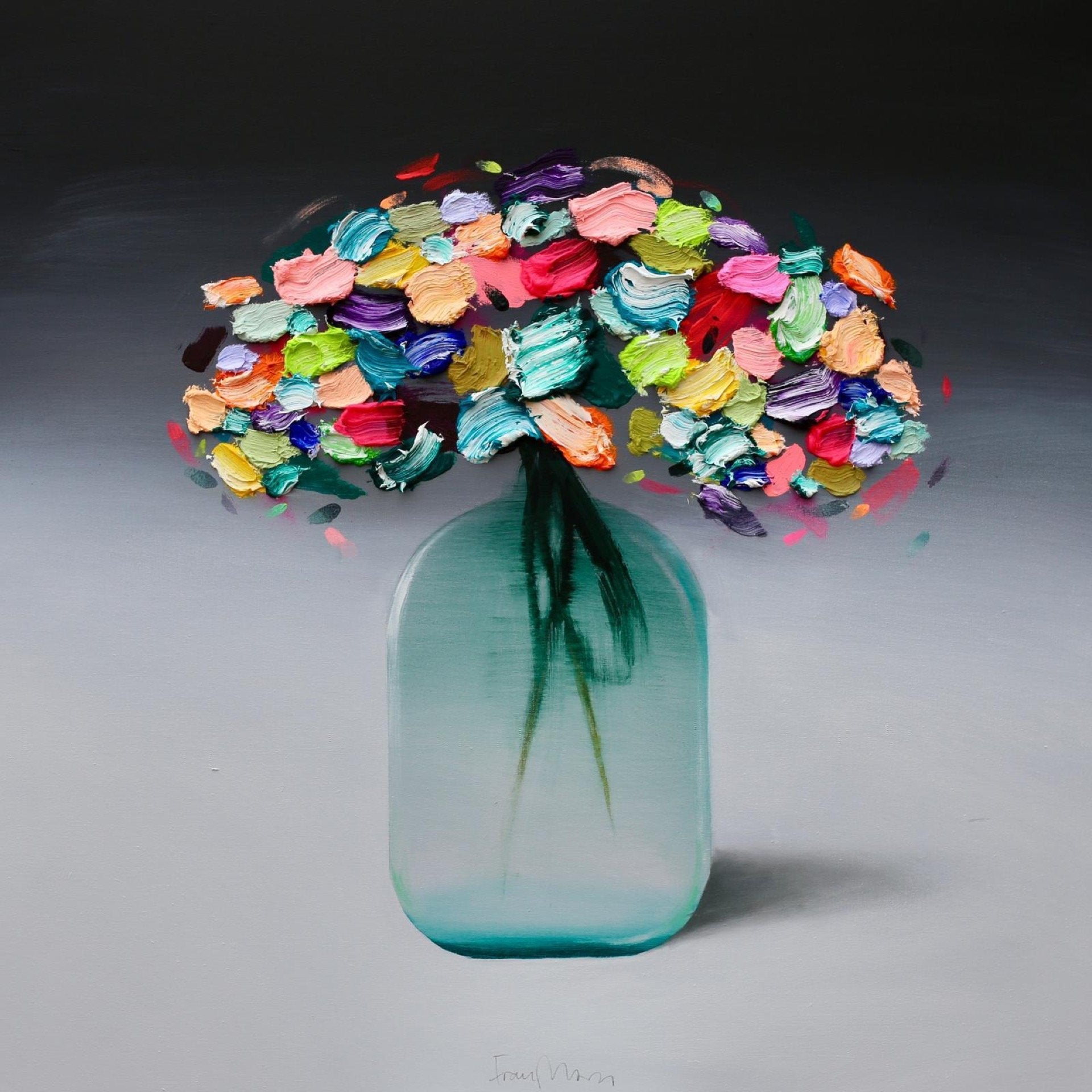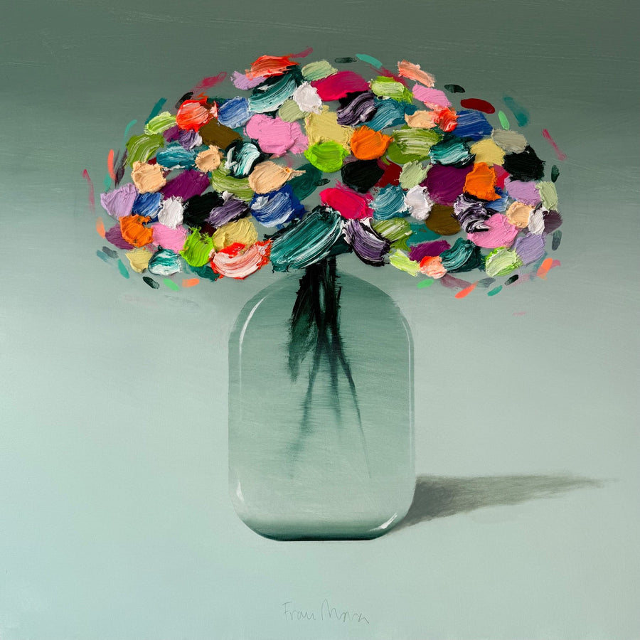 Original artwork by Fran Mora. Presented in a deep white, lacquered wooden frame