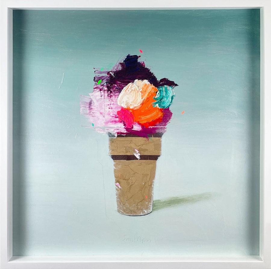 Born in Huelva in the south of Spain in 1979, Fran Mora studied at the School of Fine Arts in Seville where he specialized in painting. This current body of work called 'Domestic Nature' finds beauty in the everyday objects around us that we take for granted. A bowl of fruit is transformed into its simplest form allowing us to create our own narrative. Using traditional methods he layers gesso and oils onto linen, sometimes using paper and textiles to create texture. By using bright, almost neon colours, Mora brings these very traditional methods right back to the 21st Century....