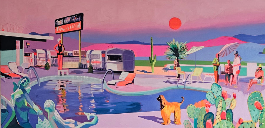 Ruth Mulvie is a contemporary fine artist, known for her vivid palette and for the delightfully unexpected detail in her paintings. She graduated from the Glasgow School of Art and over the years comparisons have been made with Hockney. She cherishes that visceral connection that Kodachrome™ gives us with our past. That single moment frozen in time that one can look at forever. Old photographs are her initial inspiration for each new piece; a digital springboard atop which she dives into her latest delicious fantasy landscape. Mulvie’s colour choices yell and fizz. They quicken the heartbeat. Sherbet yellow next to...