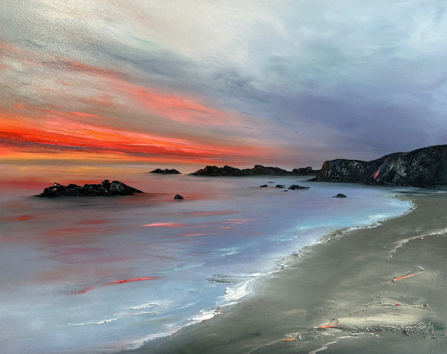 Artist Statement 'My inspiration comes from dramatic scenes I see all around me. I like to paint bold landscape interpretations mainly from places I have visited in Scotland and France, looking at views from acute perspectives in order to create dramatic compositions. I often revisit the places that inspire me at different times of day, in different lighting and weather conditions and in different seasons in order to capture the variations of light and textural qualities of a landscape and to bring new dimensions of scale and depth to my paintings. I work in oils with a wide variety of...