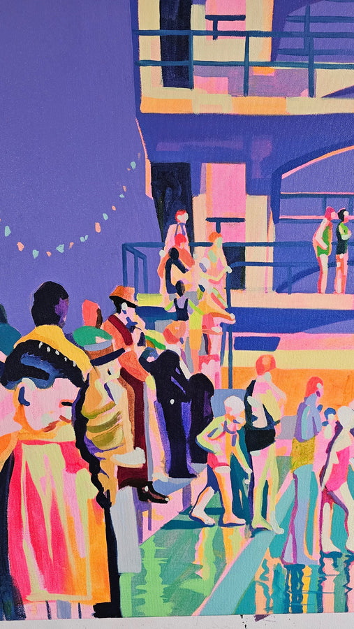 Ruth Mulvie is a contemporary fine artist, known for her vivid palette and for the delightfully unexpected detail in her paintings. She graduated from the Glasgow School of Art and over the years comparisons have been made with Hockney. She cherishes that visceral connection that Kodachrome™ gives us with our past. That single moment frozen in time that one can look at forever. Old photographs are her initial inspiration for each new piece; a digital springboard atop which she dives into her latest delicious fantasy landscape. Mulvie’s colour choices yell and fizz. They quicken the heartbeat. Sherbet yellow next to...